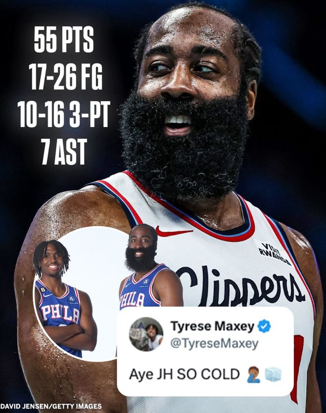 12.哈登过去五场比赛拿到192分,此前从未有36岁+的球员做到过;