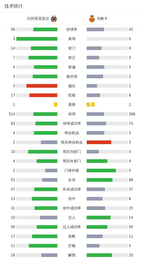 第6分钟,佩雷斯助攻,莫雷诺捅射破门,比利亚雷亚尔1-0