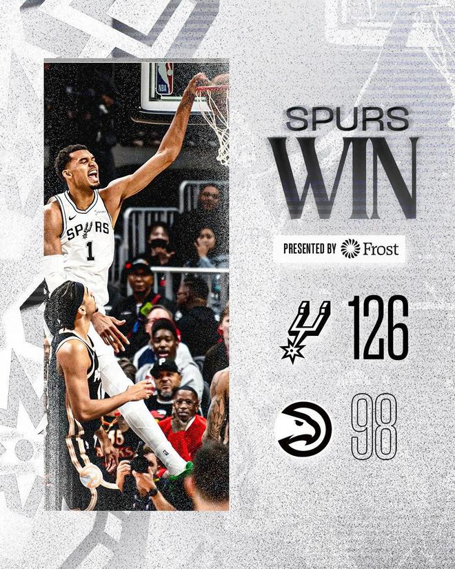 马刺28分大胜!文班26+12全队第一,状元11中4,勇士旧将首发最低